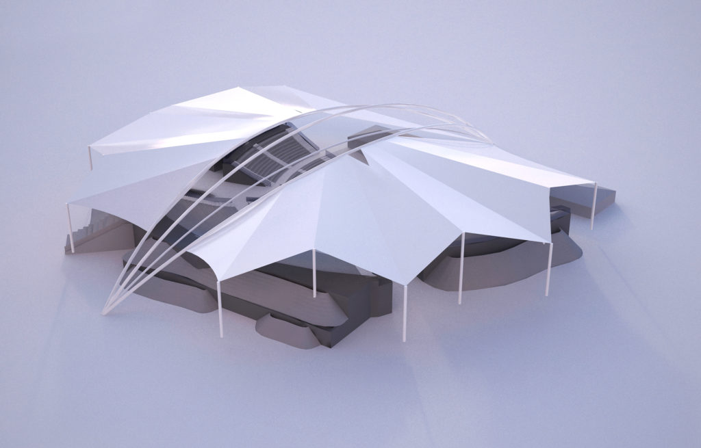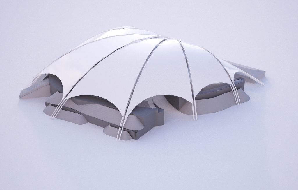 Structurile cu membrane sunt perfecte pentru acoperirea amfiteatrelor din orașe și parcuri, diverse facilități sportive (terenuri de sport etc.) și tot felul de terase sau grădini.